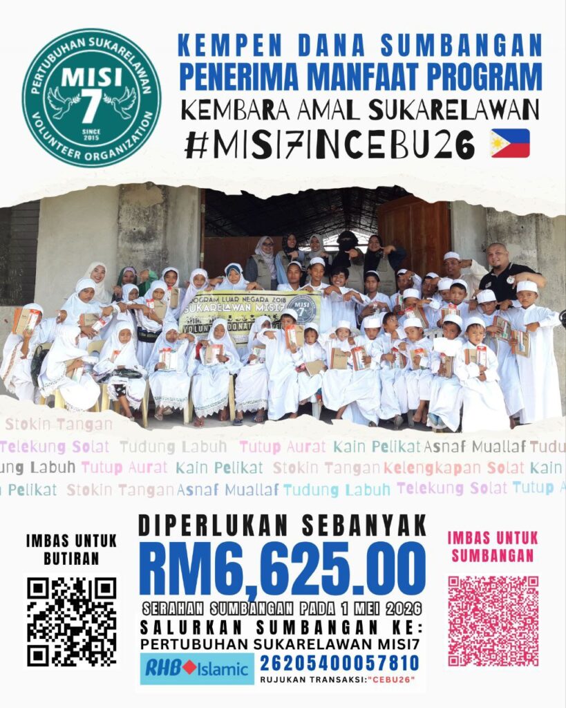 1. In sha Allah, agihan sumbangan ini akan dilakukan pada 1 Mei 2026 menerusi Program Kembara Amal Sukarelawan #MISI7InCebu26.