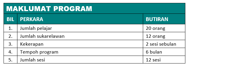 Sebahagian daripada mereka masih bergelut dengan asas dalam diam. Melalui program ini, MISI7 menggerakkan sukarelawan untuk membantu mereka secara berfokus, dalam kumpulan kecil, secara konsisten. Program ini akan bermula pada 9 Mei 2026 dan dilaksanakan sebanyak 2 sesi setiap bulan selama 6 bulan.