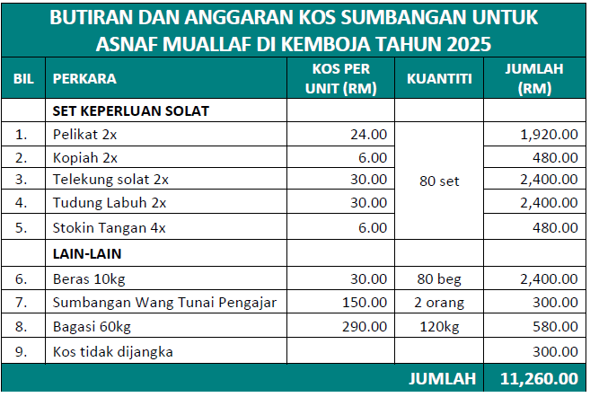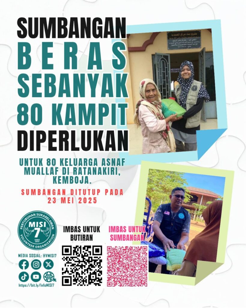 Serahan sumbangan ini akan diserahkan sendiri oleh kami pada 7 & 8 Jun 2025 akan datang menerusi program Kembara Amal Sukarelawan #MISI7QurbanInCambodia25.
